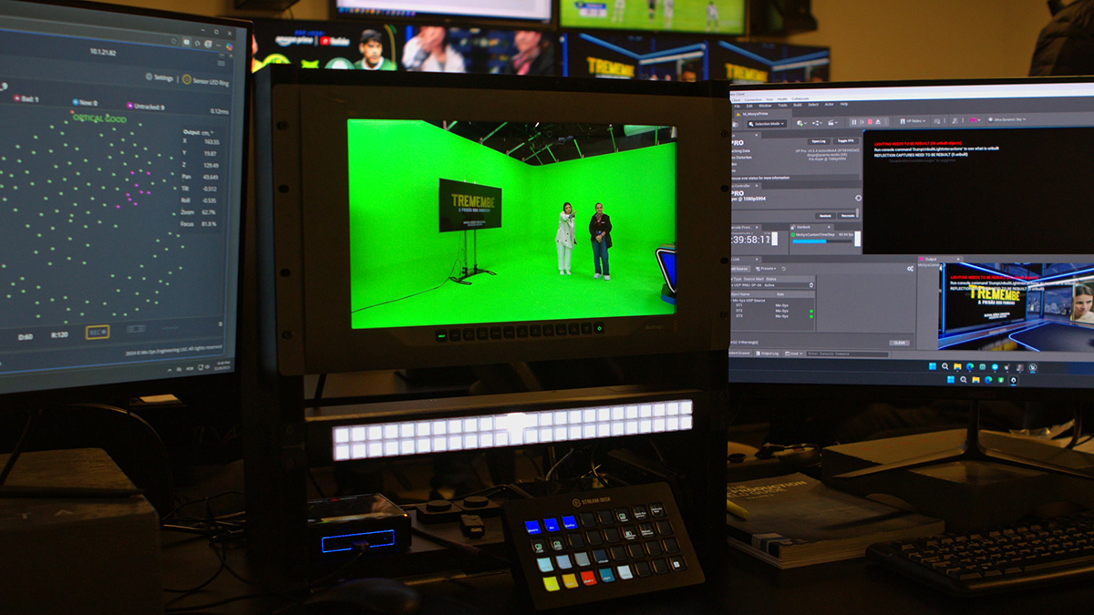 Tieres explained that creating a green-screen studio required precise control to ensure all physical elements—such as the desk, chairs, and on-screen talent—blended seamlessly into the virtual space. An important consideration was making sure presenters with different skin tones were accurately lit and keyed to achieve natural, consistent results on screen. He said: "To achieve the cleanest possible key and the best cut, we needed not only consistent lighting, but also a chroma set-up that was easy to key—minimising reflections on hair and avoiding colour contamination on the skin tones."