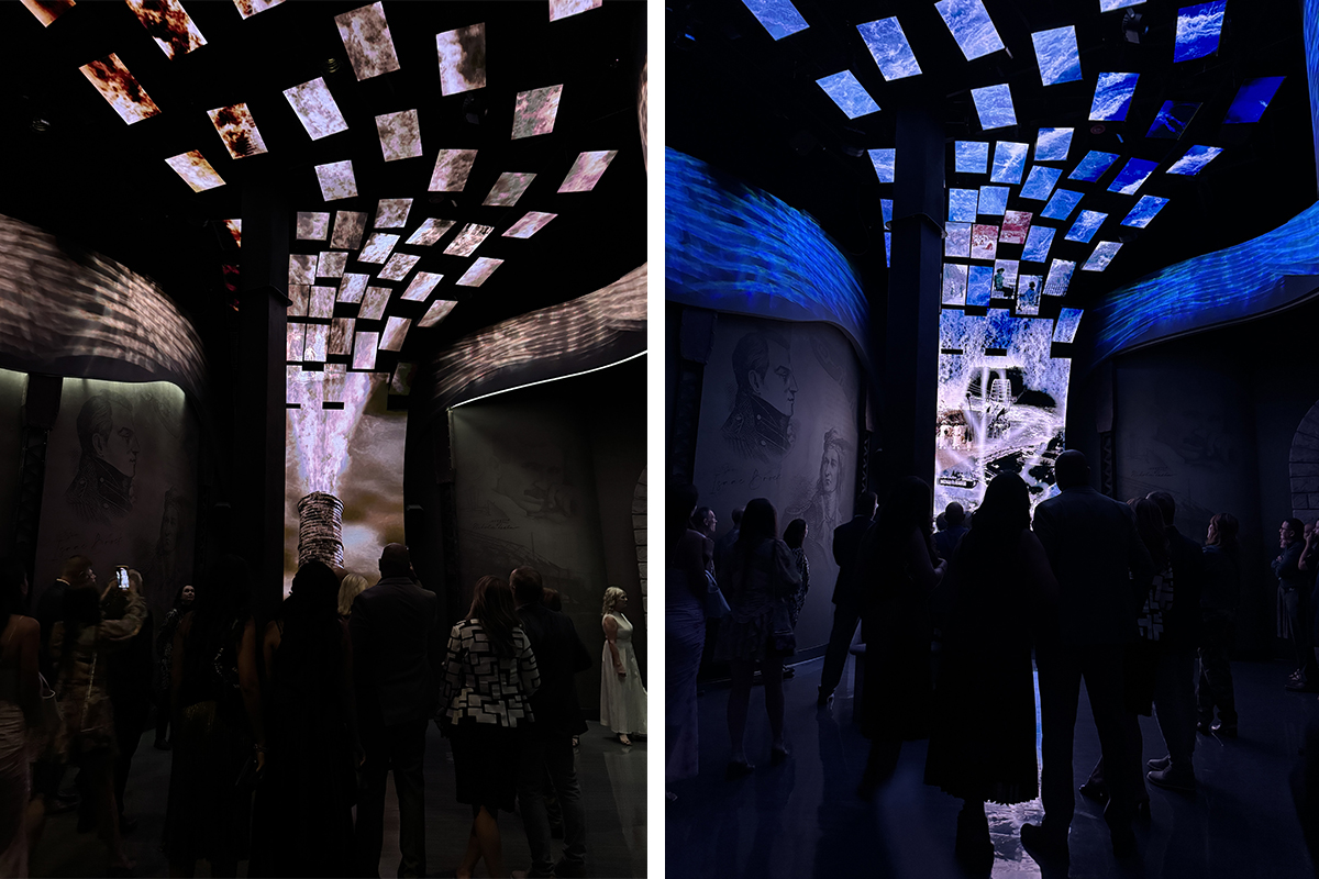 Visitors first pass through Eons of Erosion and The Ancestors Room, where lighting subtly reinforces the digital environments and storytelling. The largest pre-show space, the Waterfall Room, focuses on the human and industrial legacy of the Falls. Here, the lighting team worked to complement the complex video installation by using Rosco X-Effects projectors to animate the perimeter bulkhead, supporting the flowing motion of the media and helping to convey the dynamic story of Niagara Falls.