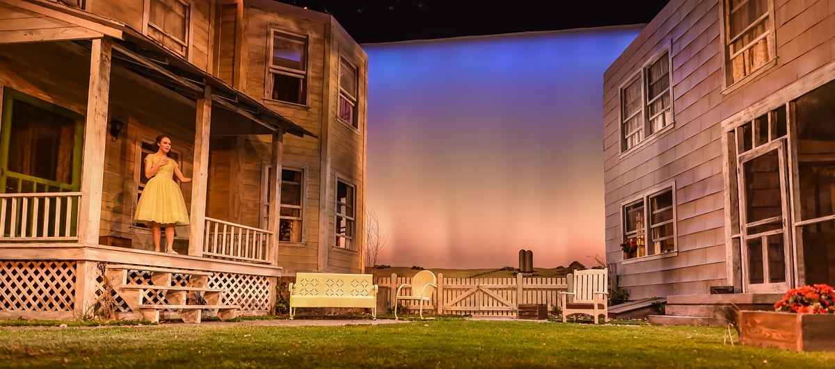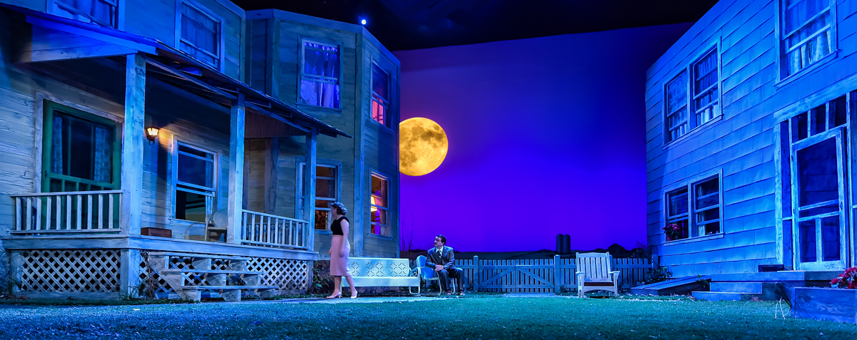 The play is set during Labor Day weekend, 1953 in a small Kansas town and the production’s set consisted of two large houses. The two houses on stage were interesting because, during early discussions with Set Designer Howard Jones, Jimmy expressed his desire to “really lean on saturated sunrise and sunset washes.” Inspired by this idea, Howard thought it would be effective if the houses, which were almost white, were treated like 2 big cycs that Jimmy could paint with colored light.