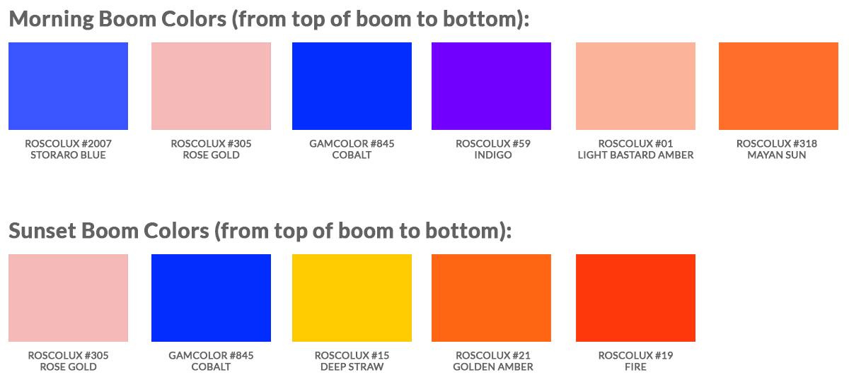 Creating both morning palettes necessitated a 21' high 'morning boom' with a double set of PARs hung every 18" from bottom to top. Utilizing the same palette of colors, Jimmy was able to mix together two very different looks. During the Act 3 morning scene, for example, Jimmy mixed the G845 and the R318 at different intensities to work through a series of saturated lavenders and pinks that developed throughout the final morning action.