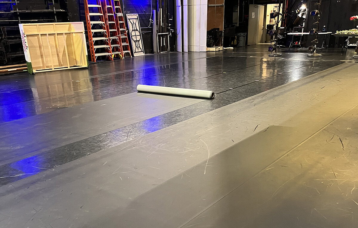 The first time they rolled their new Duètte floor out on stage, Brett was pleased to see that it laid flat immediately – eliminating the “Marley Stomp” they usually have to do to get the floor to lay flat.
