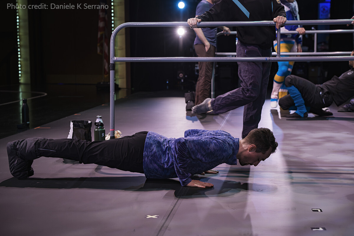 The floor exceeded expectations during the first rehearsal inside the performance venue. Brett explained that “typical new floors are slick and get their traction over time,” but Duètte had “the right amount of traction from the start.” He was surprised that none of the dancers had requested putting down some rock rosin (hardened tree sap used to give more grip for dancers) even after 20 minutes on the floor.